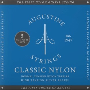 Augustine Spanish, Classical and Flamenco nylon acoustic guitar strings are now available in 3 packs sets