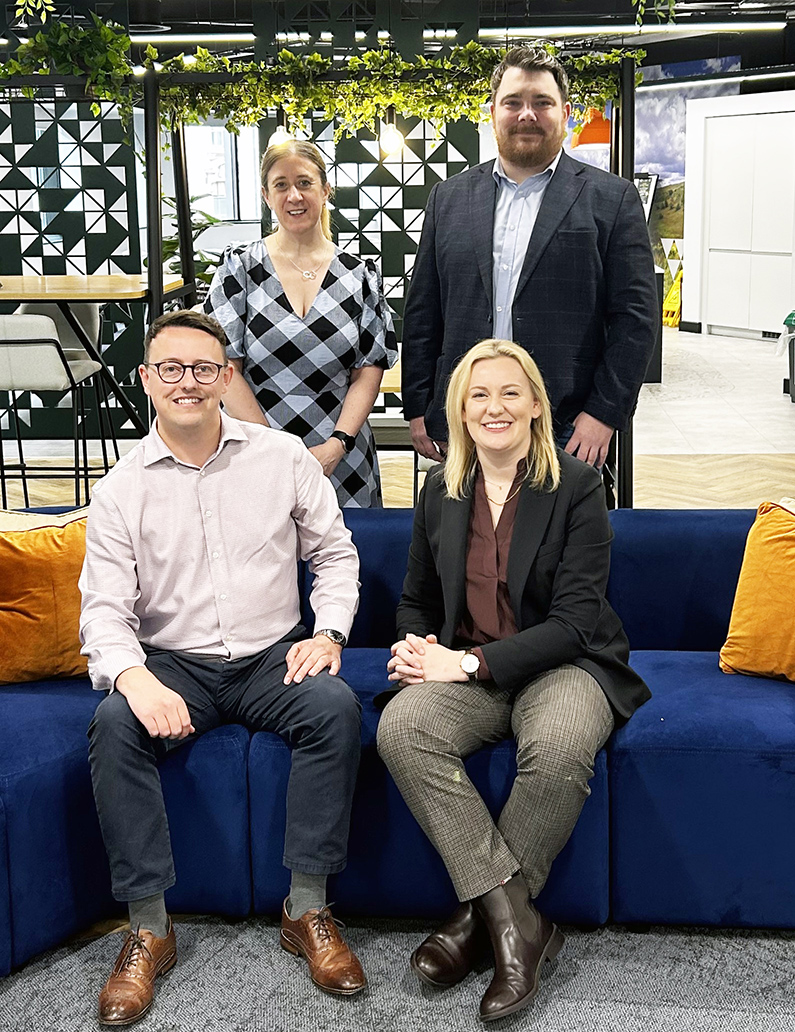 Image caption (top of page): From left are associate director Alex Sidebottom, partner Becky Dawson, regional managing director Claire Needham and partner Ant Hamilton
