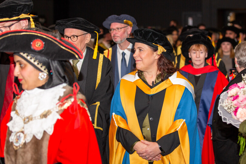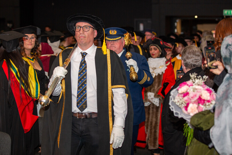 Degrees were then conferred in collaboration with Tim Openshaw, Greater Manchester, and Janice De Sousa, Leeds Trinity University, with Dr Jo Salter MBE invited as this year’s guest speaker. Dr Salter has worked extensively within the university sector and was a former Royal Air Force fast-jet pilot – the first woman in the UK to achieve this incredible status.