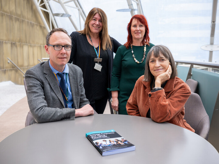 From left, Dr William Martin, Executive Dean, Faculty of Health and Social Care, Dr Joanna Nichols, Head of Department, Healthcare Leadership and Management at the University of Bradford, Dr Elizabeth Cooper, Head of School: Nursing, Public Health and Healthcare leadership, University of Bradford and Alison Hadley OBE, Director of the Teenage Pregnancy Knowledge Exchange. Images credit: Kiran Metha@KM Images Ltd