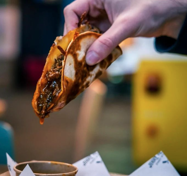 Meanwhile Jimmy Macks offers seriously good birria tacos with a gorgeous dipping sauce that will make you come back for more. Not a taco lover? No problem – they also have warm birria loaded fries served with cheese and sauces to your liking.