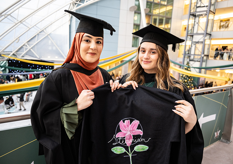 rom left, graduates Maleeha Abbass and Alex Troup, the Creator and President of the University’s STEMinism Society. Images credit: Kiran Metha@KM Images Ltd