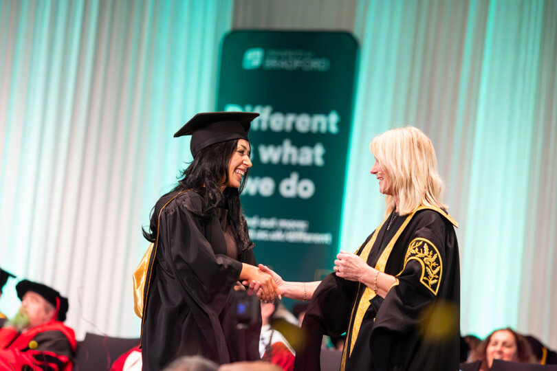 Master’s graduate Mollie Browes, graduating and meeting the Vice-Chancellor Professor Shirley Congdon. Picture credits: University of Bradford