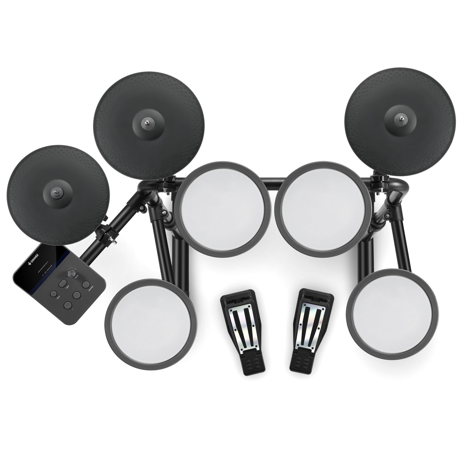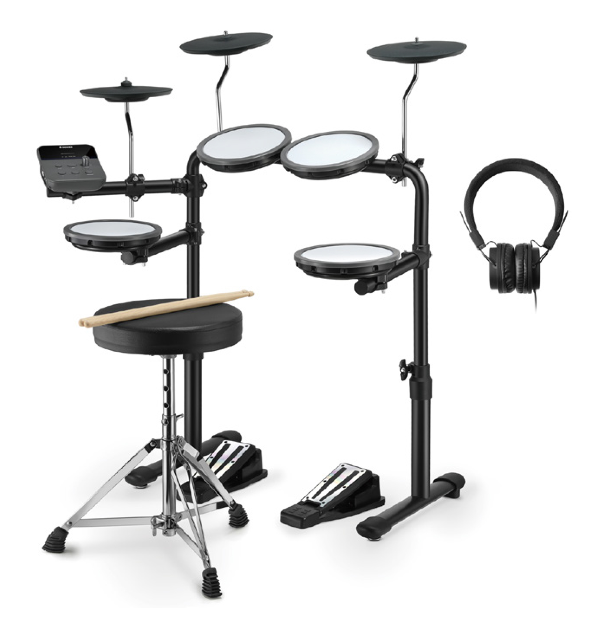 Compact and portable is again the theme for the Donner Ded 70 Electric Drum set. With a fully adjustable sturdy frame, robust trigger pedals for hi-hat and bass drum, 4 drums with 6in (15.24 mm) diameter offering a wider strike for small hands, 68 sounds and 12 preset kits, mains or mobile power options, the Ded 70, complete with padded seat, sticks and headphones, is the perfect choice for a youngster’s introduction to the magical world of sound and rhythm.