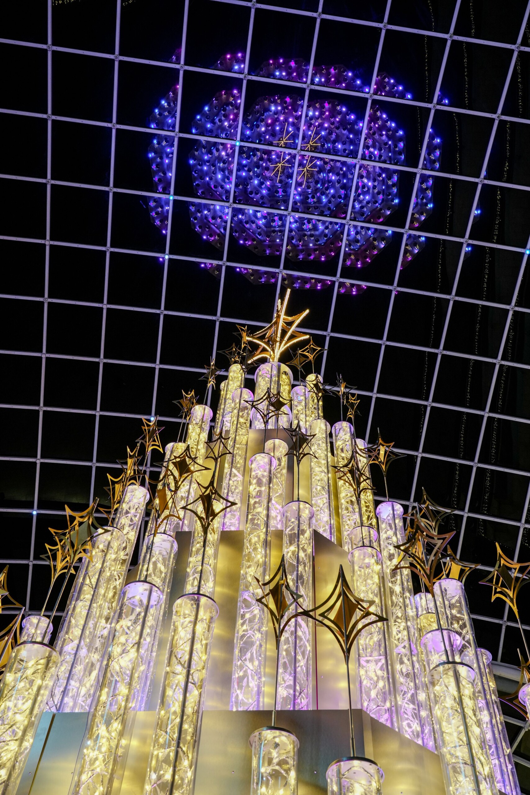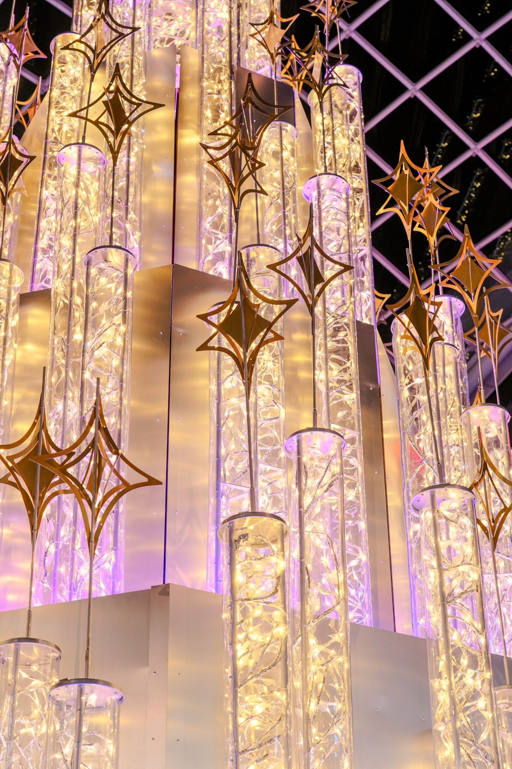 The elegant new Christmas tree features nearly 100 bespoke light tubes and dazzling star toppers and has taken centre stage beneath Trinity Leeds’ main atrium.