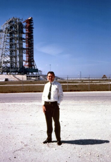 Mike Dinn at Cape Kennedy during a visit after the Apollo 12 launch in November 1969 – its launch support tower was still in place. Images c/o Mike Dinn