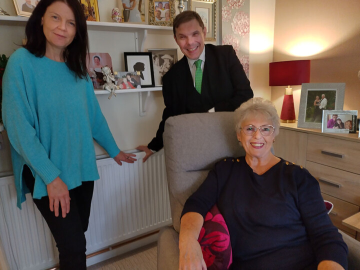Cllrs Kent and Pavlovic at home with Valerie Jones