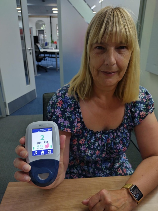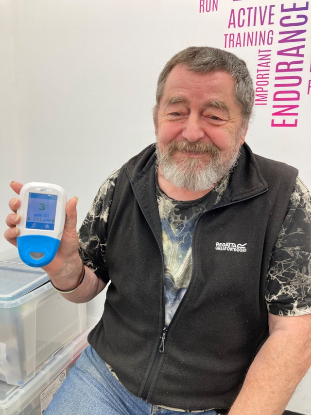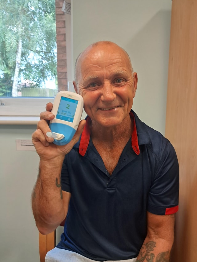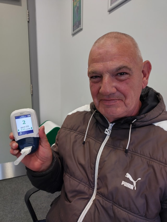 At his first appointment, Fiona explained the effect smoking was having on his body, and he did a simple breath test that showed the amount of carbon monoxide in his blood. She then talked through the different nicotine therapy options on offer.