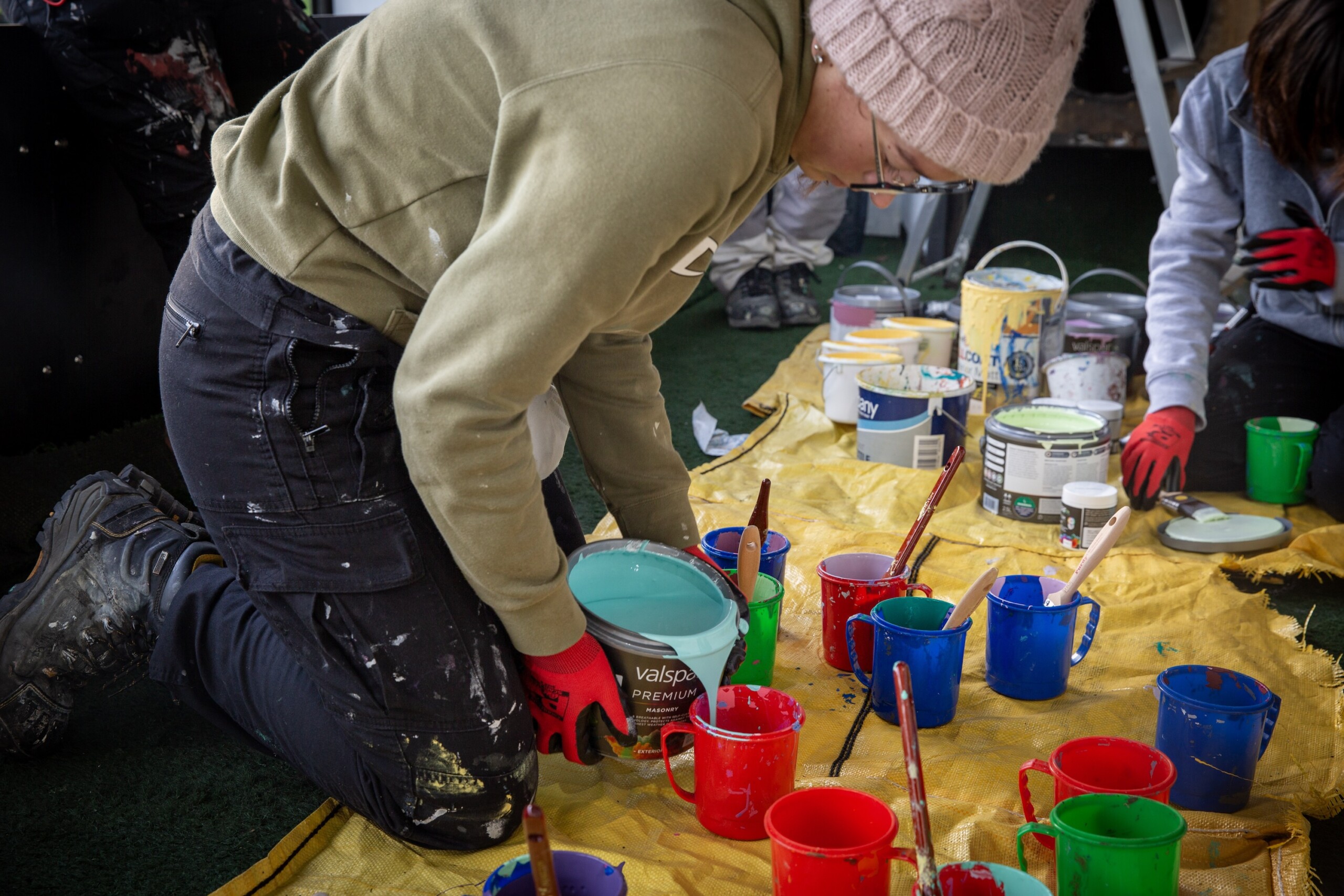 Painting & Decorating students tackle striking football mural