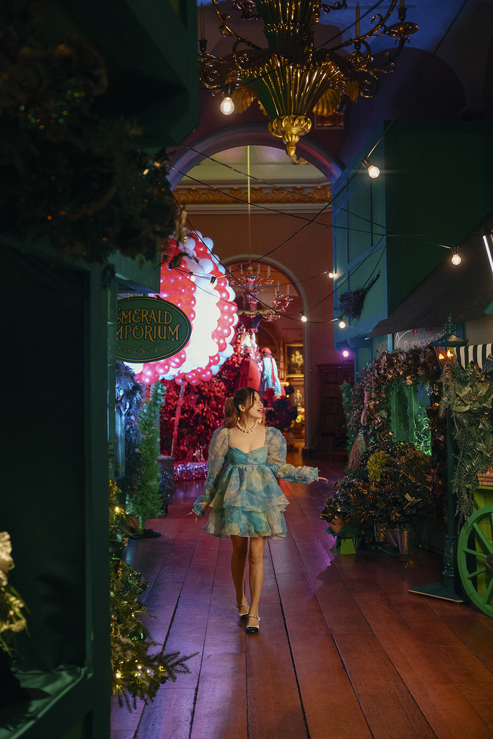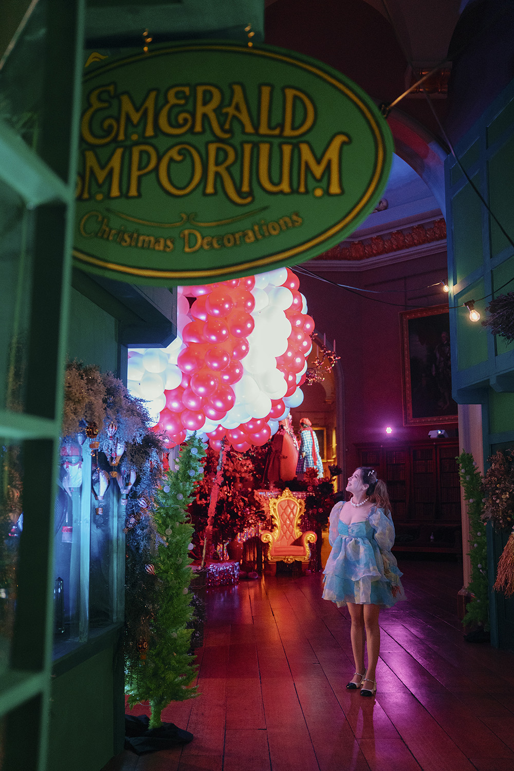 The showstopping Emerald City High Street in the Long Gallery is a highlight of the experience for 2025, with life size fabricated shop fronts inspired by York Shambles, decorated by a specialist signwriting expert. In addition, Castle Howard’s famous 28-foot Christmas tree sparkles in the Great Hall, installed by a team of 30 using a specialist forklift and winch system. The Great Hall is the crowning masterpiece of architect Sir John Vanbrugh’s design presenting Castle Howard with its unique domed silhouette – completed with suitable theatricality by the grand tree decorated with thousands of emerald-inspired decorations as part of the Wizard of Oz theme.