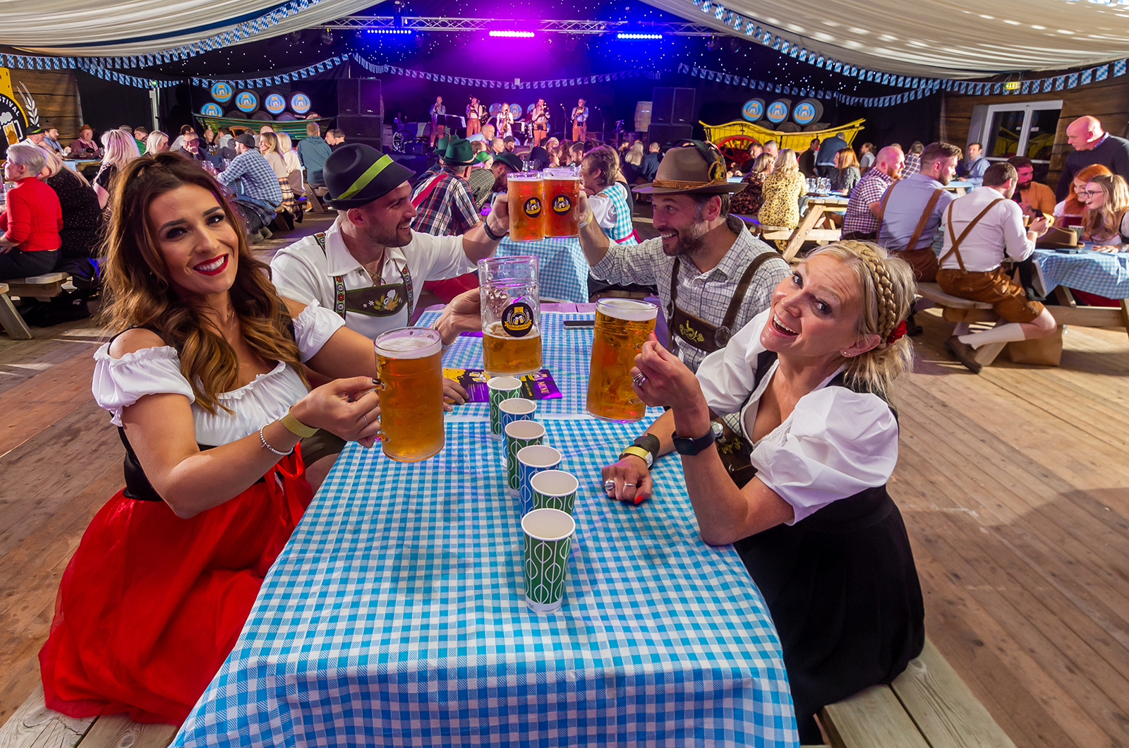 Event organiser James Cundall, CEO of Jamboree Entertainment says “We will transform the giant marquee into a Bavarian festival scene, with rows of tables and benches down most of its 160m length, two performance stages, rustic carts full of wooden beer barrels, thatched wooden barns, flags galore and generally everything needed for a great night out.”